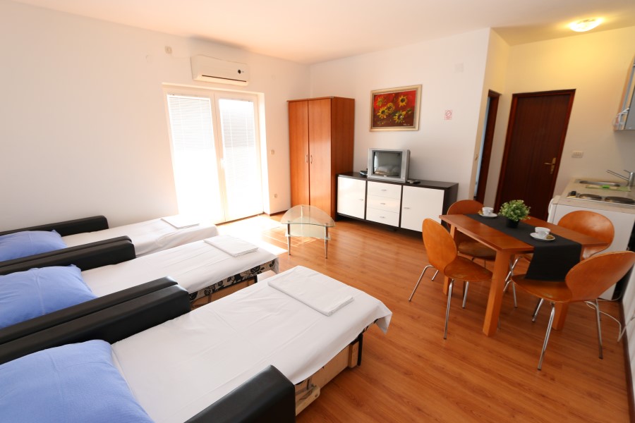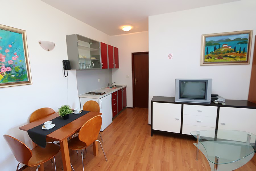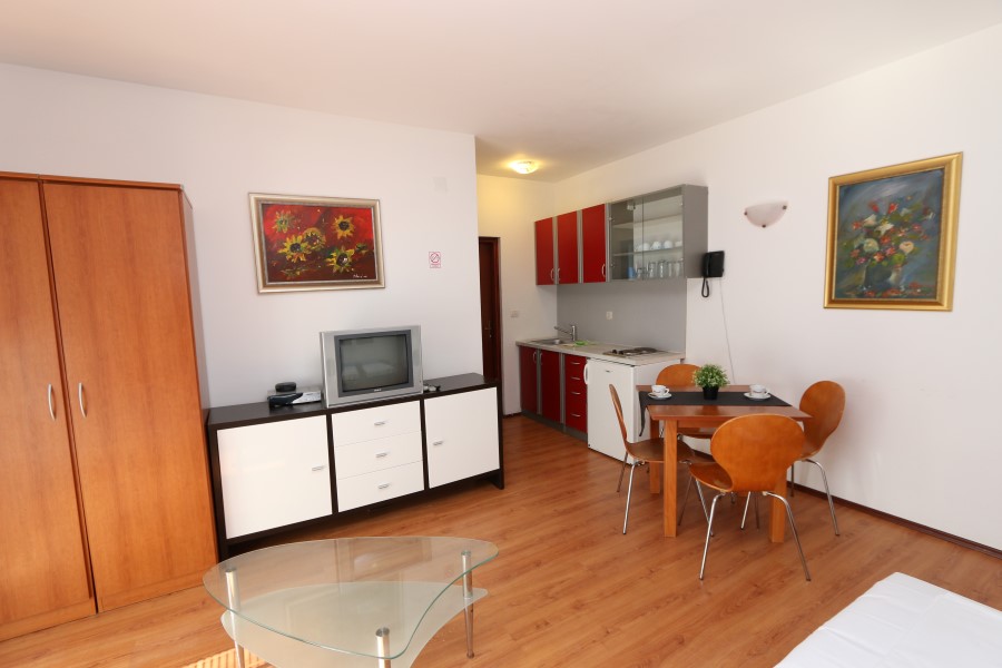 U ponudi imamo 20 apartmana (37 - 43 m2) za smještaj 80 osoba u dvije zgrade. Apartmani posjeduju kuhinju, kupaonicu, sat/tv, mini -bar, klima uređaj, sef, wifi internet i prostranu terasu sa lijepim pogledom. Svaki apartman ima parking mjesto.